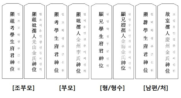 - 제사 대상과 관계에 따라 문구가 달라짐